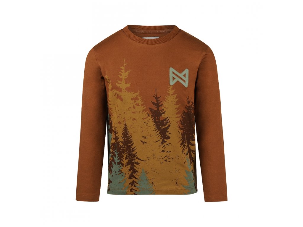 Chlapecké triko užšího střihu. Na předním díle potisk lesních stromů.