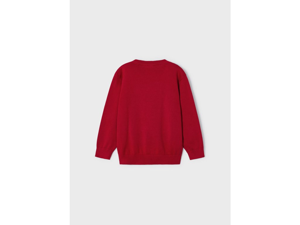 Krásný červený svetr z jemné pleteniny, který bude slušet každému chlapci.