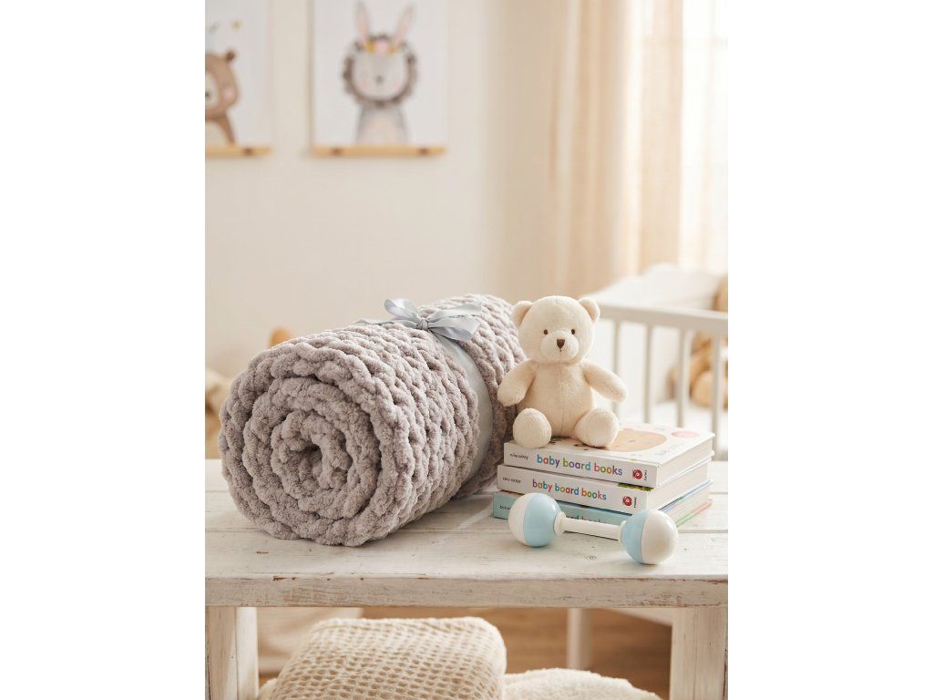 Vhodná do kočárku, nosítka, postýlky... Součástí deky ji i pletený usínáček. Přijde Vám dárkově zabalená.