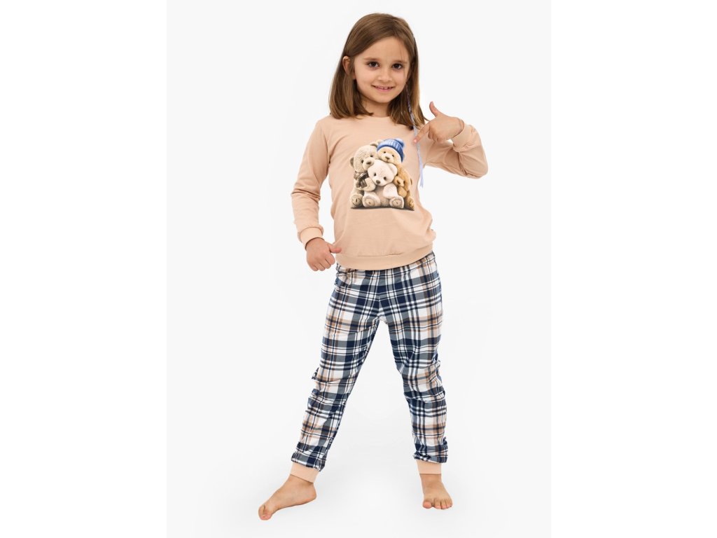barvě s veselým potiskem medvídků s károvými kalhotami tvoří pěkný komplet.