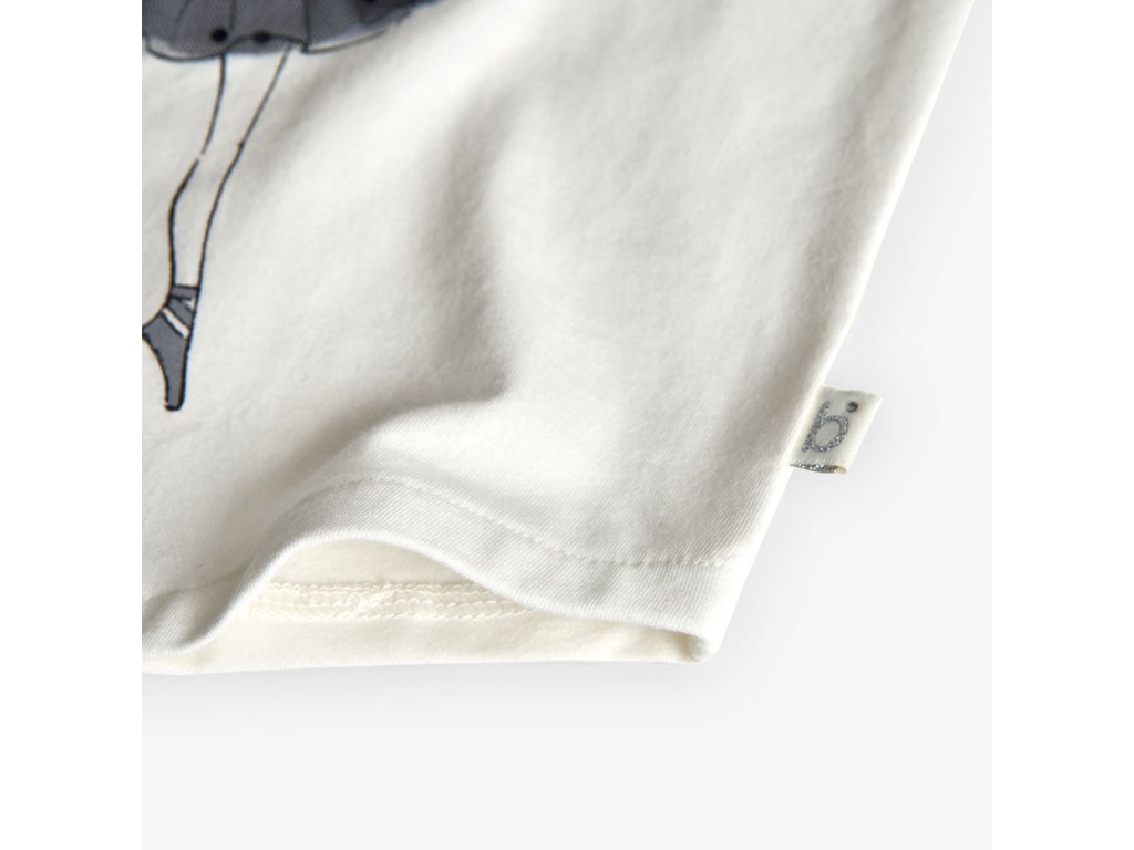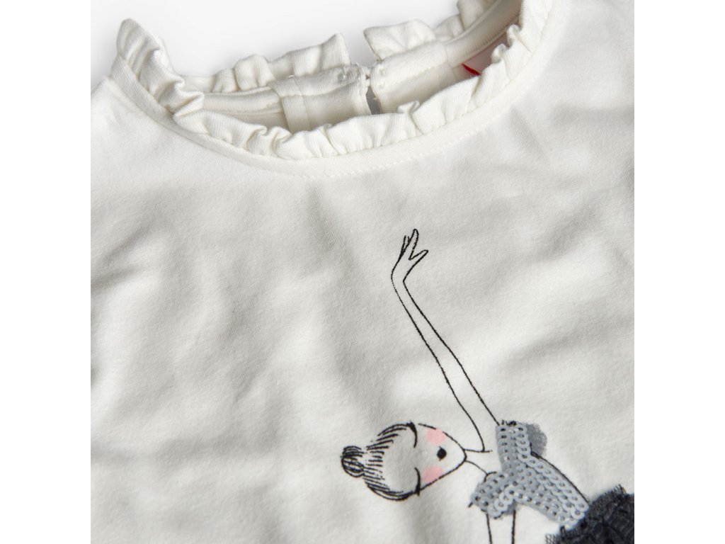 Halenka s 3D aplikací baletky. Ozdobný výstřih, na zadním díle slzička se zapínáním na knoflíčky.