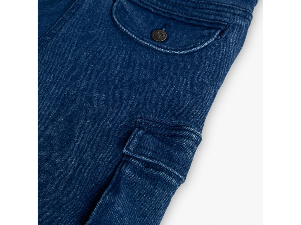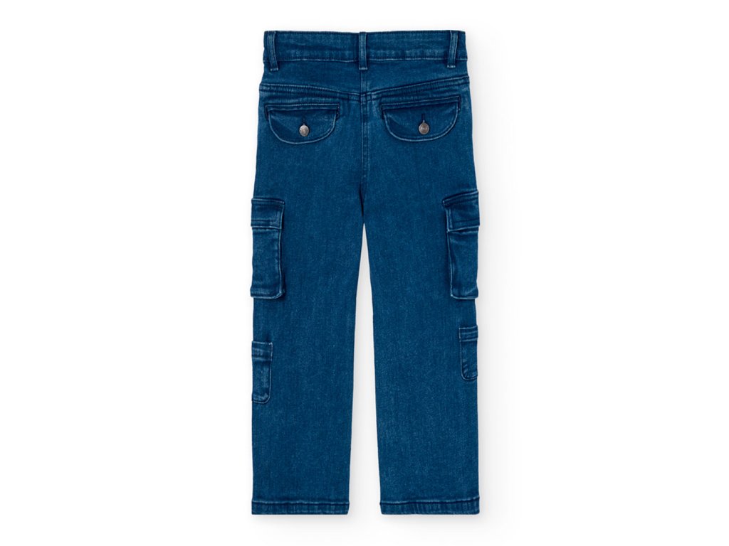 Na zadku vsazený kapse s kulatou klopou a knoflíkem.