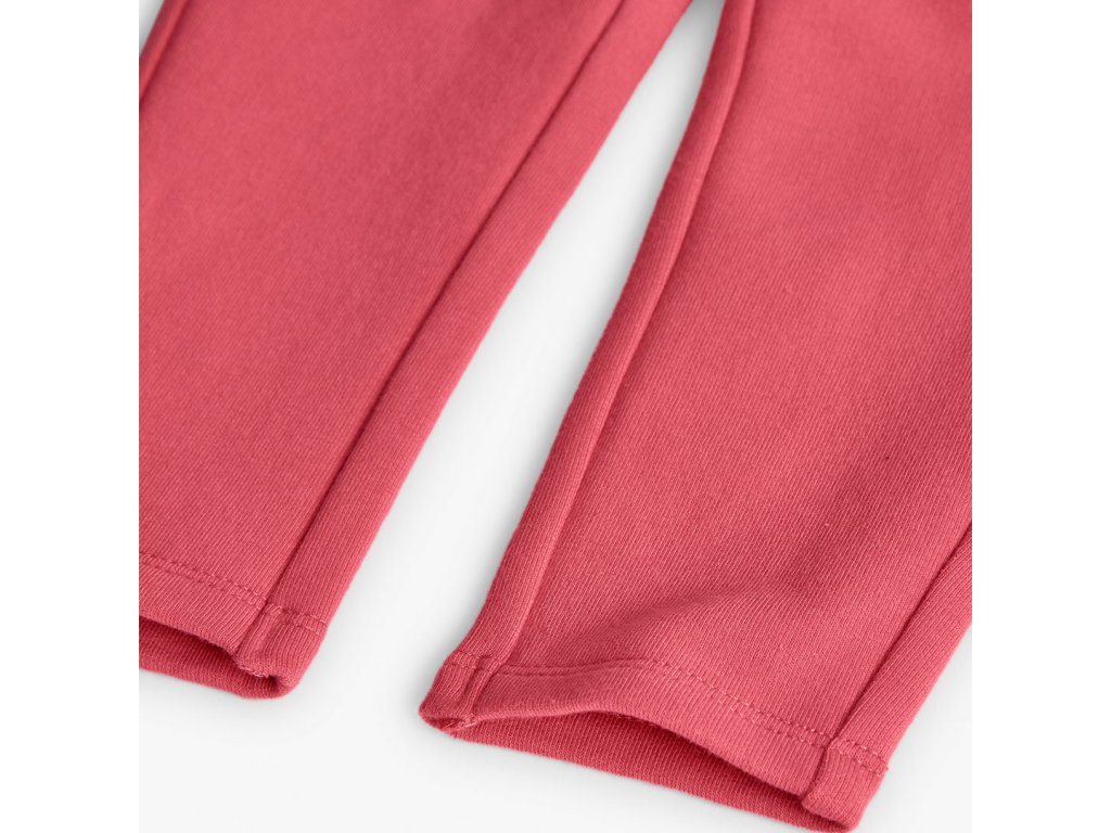 Elastické legíny z teplákoviny, uvnitř počesané. V pase pohodlný lem na gumu s možností nastavení.