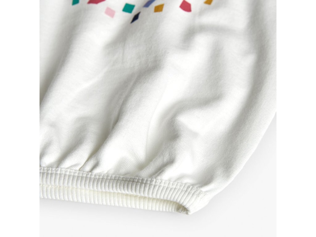 Mikina s řasenými rukávy i spodní část řasená do patentu.