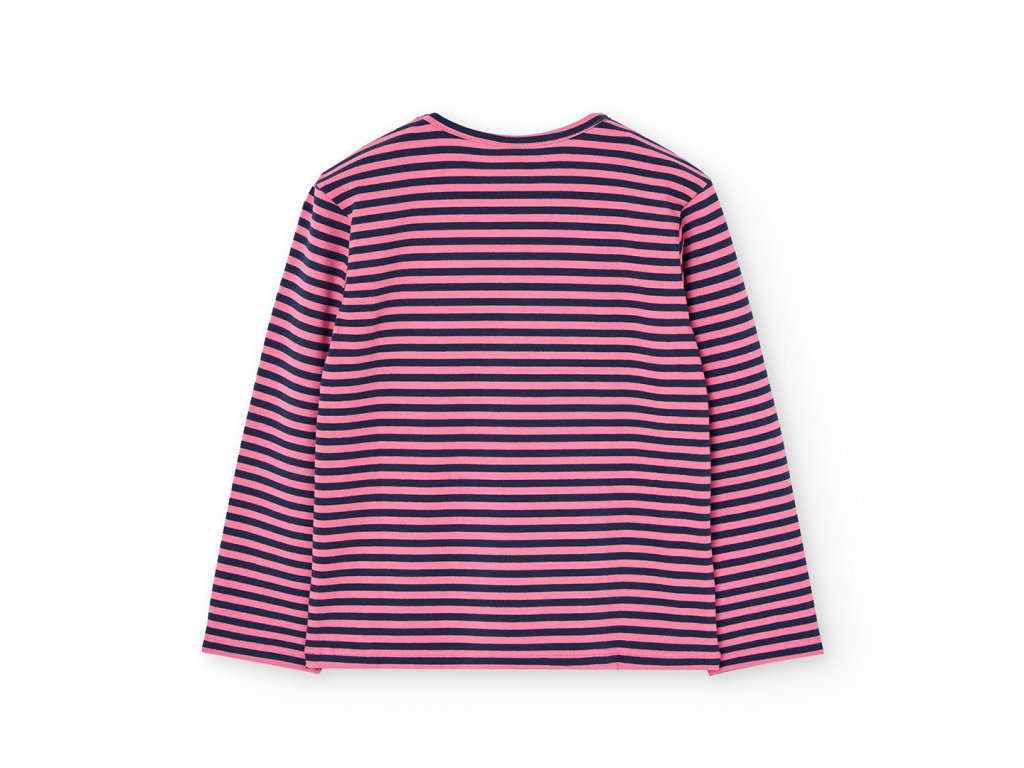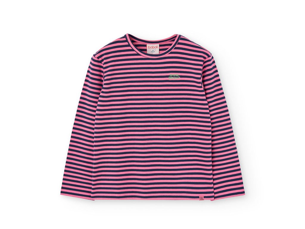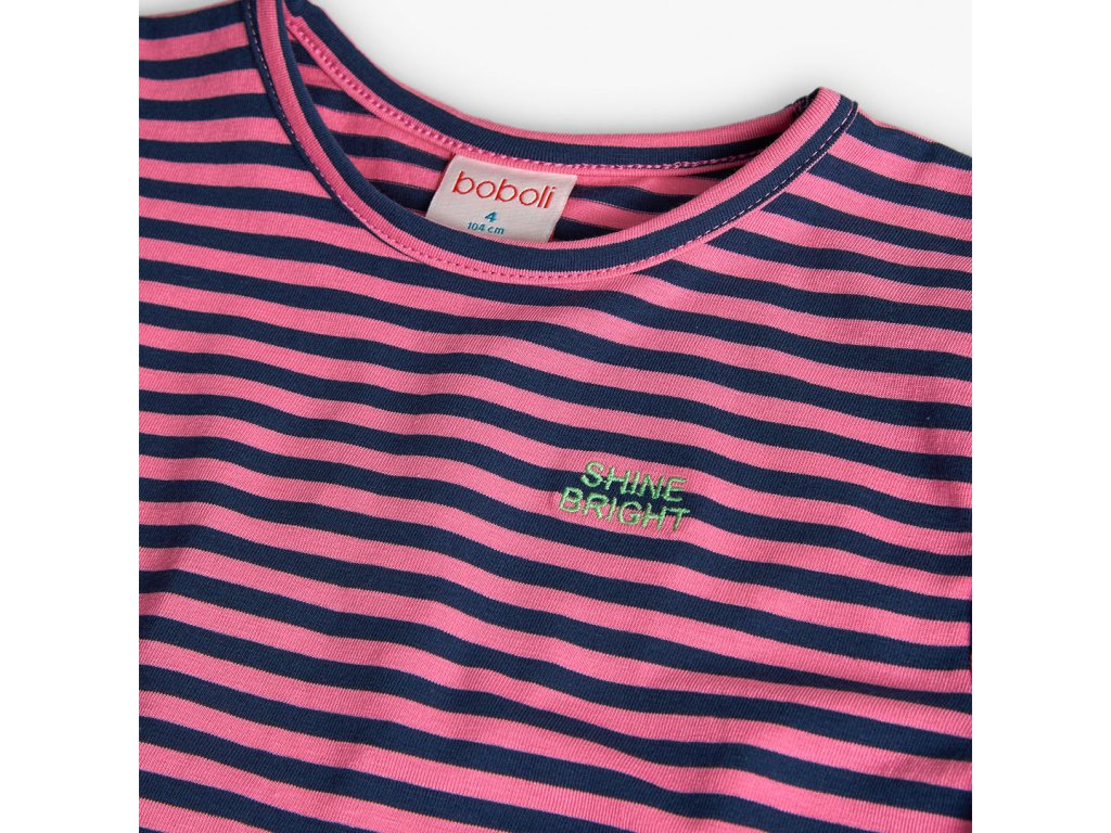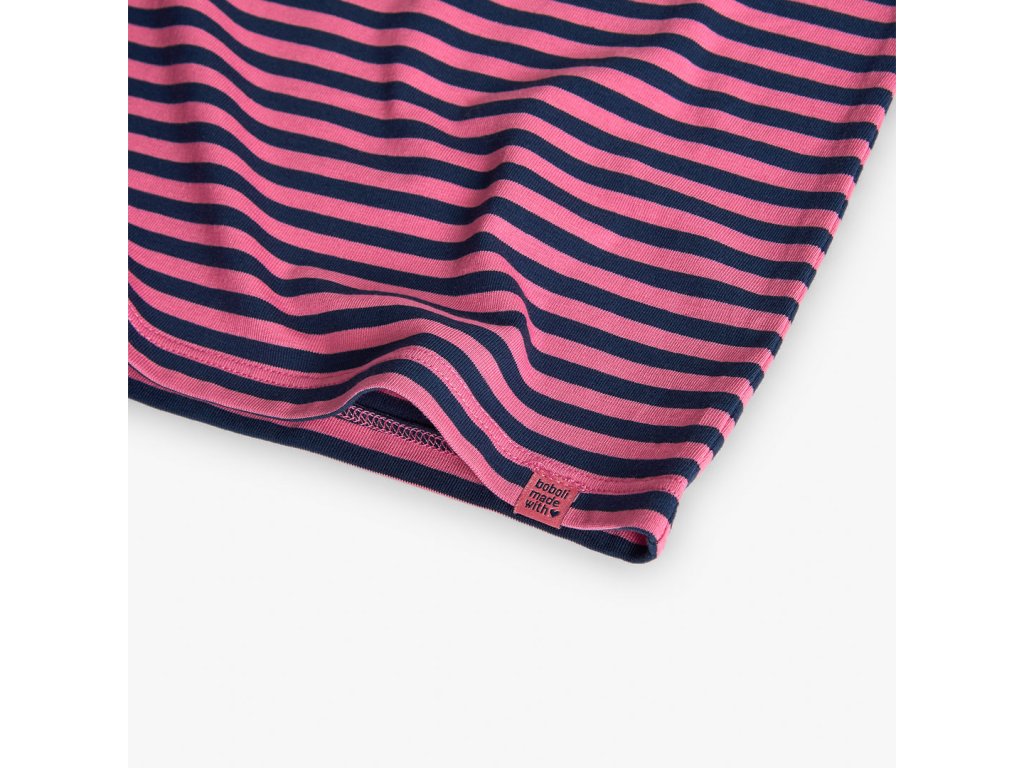Jemné proužky v růžovomodré kombinaci. Na předním díle drobný nápis.