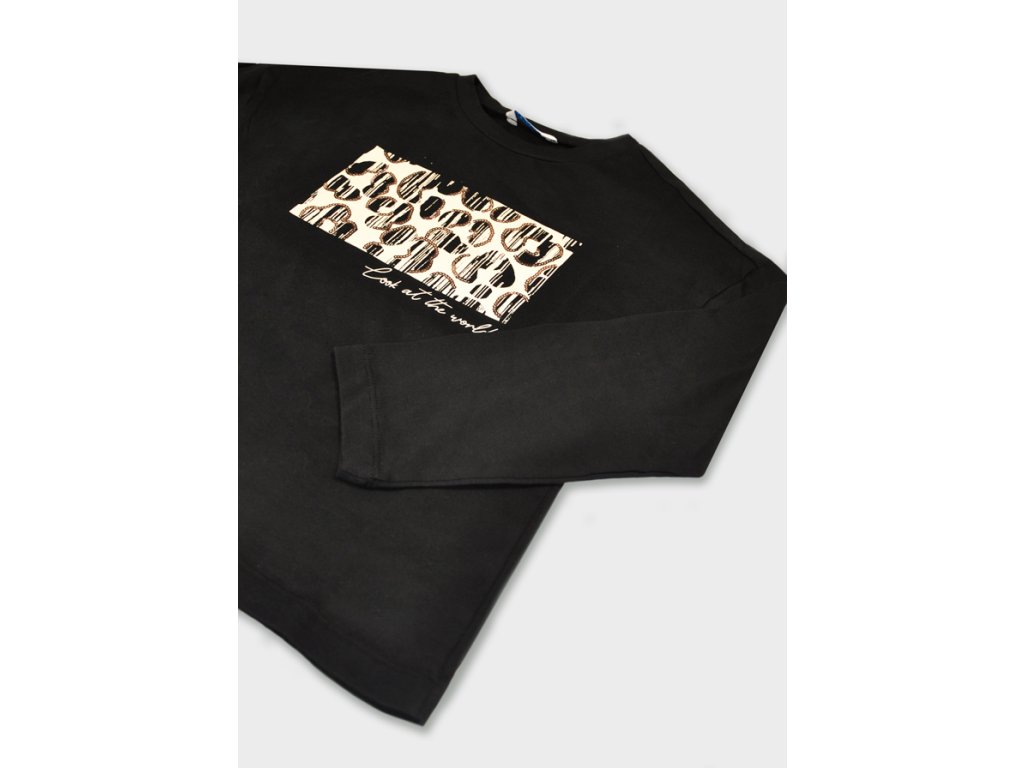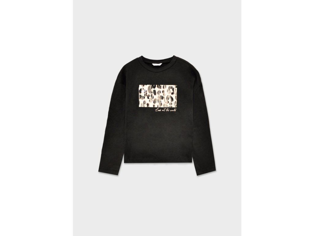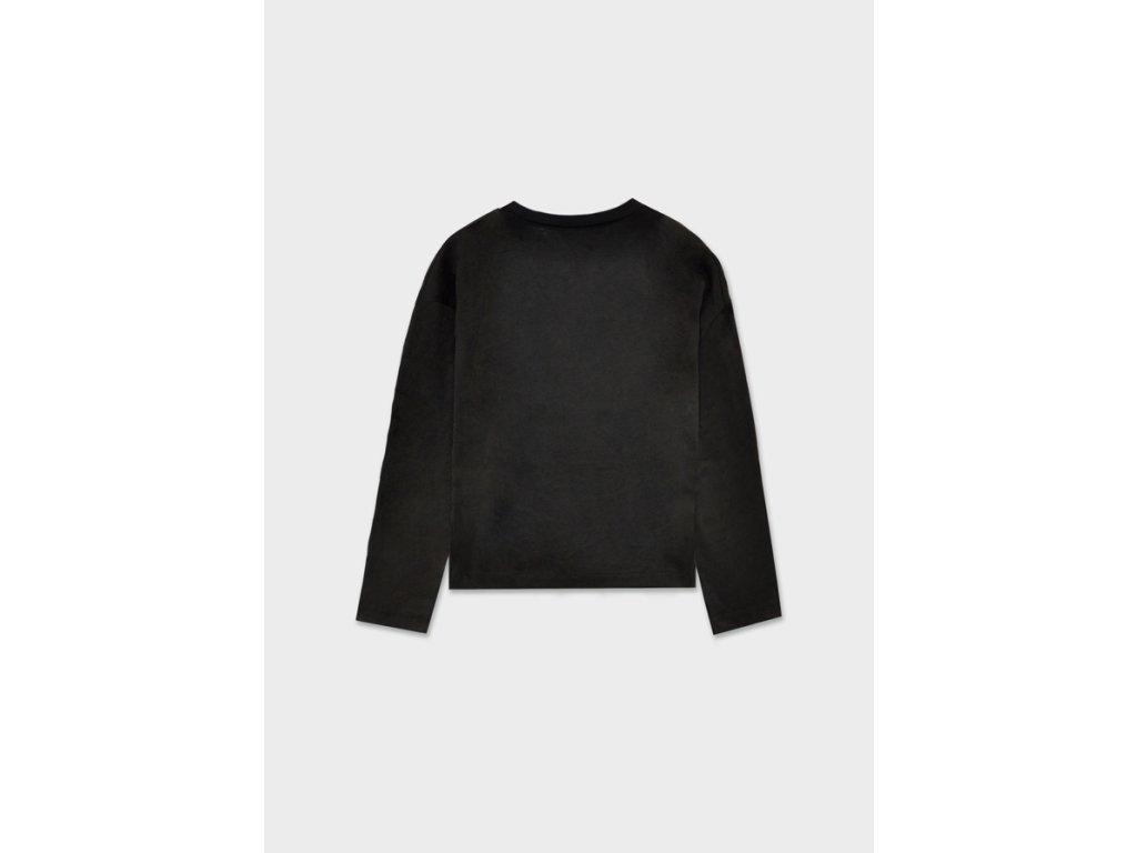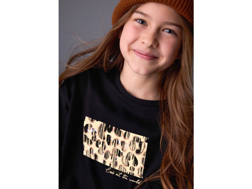 Triko v černé barvě ve zkrácené délce a širšího střihu.