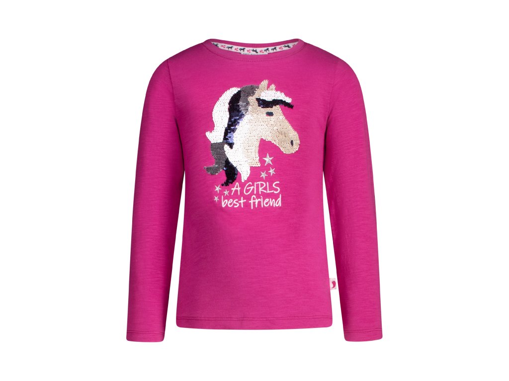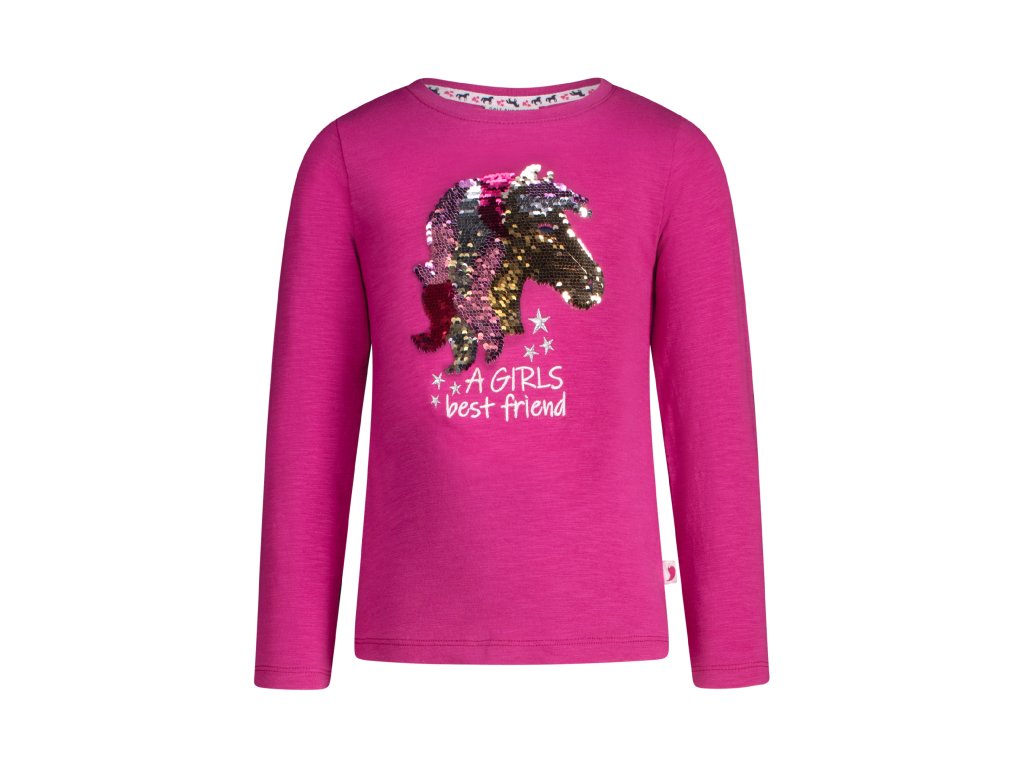 Halenka ve fuksiové barvě s glitrovým obrázkem.