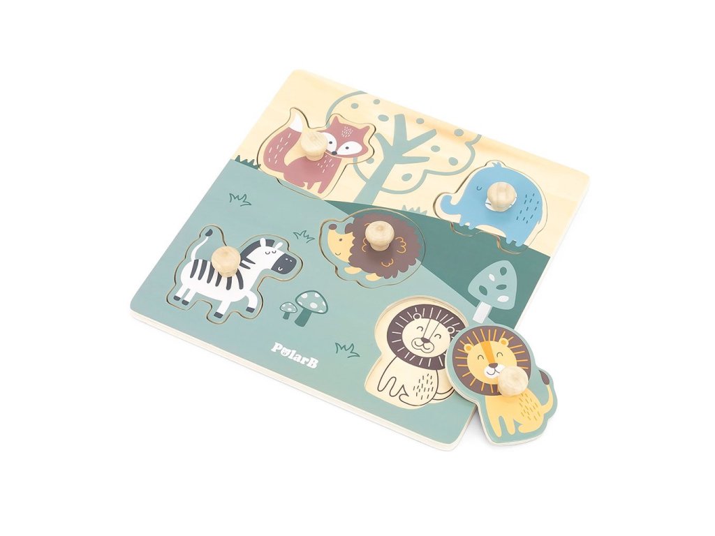 Prvky skládačky jsou opatřeny dřevěnými kolíčky, díky nimž může batole snadno uchopit skládačku do ruky a umístit ji na správné místo na dřevěném podkladu. Jedná se o jeden z nejlepších způsobů, jak si procvičit soustředění a koordinaci ruka-oko.