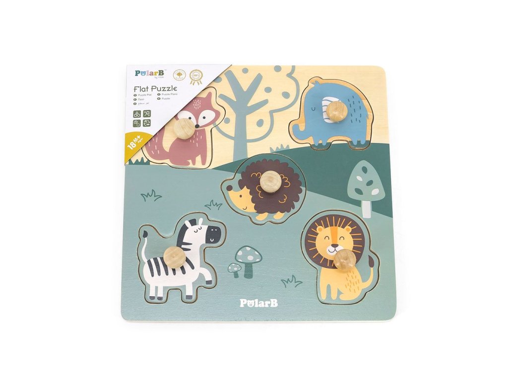 Barevné puzzle od společnosti Viga je ideální hračka, která poslouží nejen jako tradiční skládačka, ale především umožní dítěti poznat první zvířátka: lišku, ježka, slona, zebru a lva.