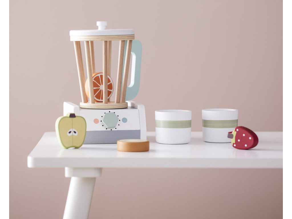 Kreativní hračka nejen pro holčičky. Stylový mixér se skládá ze 3 částí. Podstavec s otáčecím knoflíkem, nádoba s ouškem a víko k mixeru.