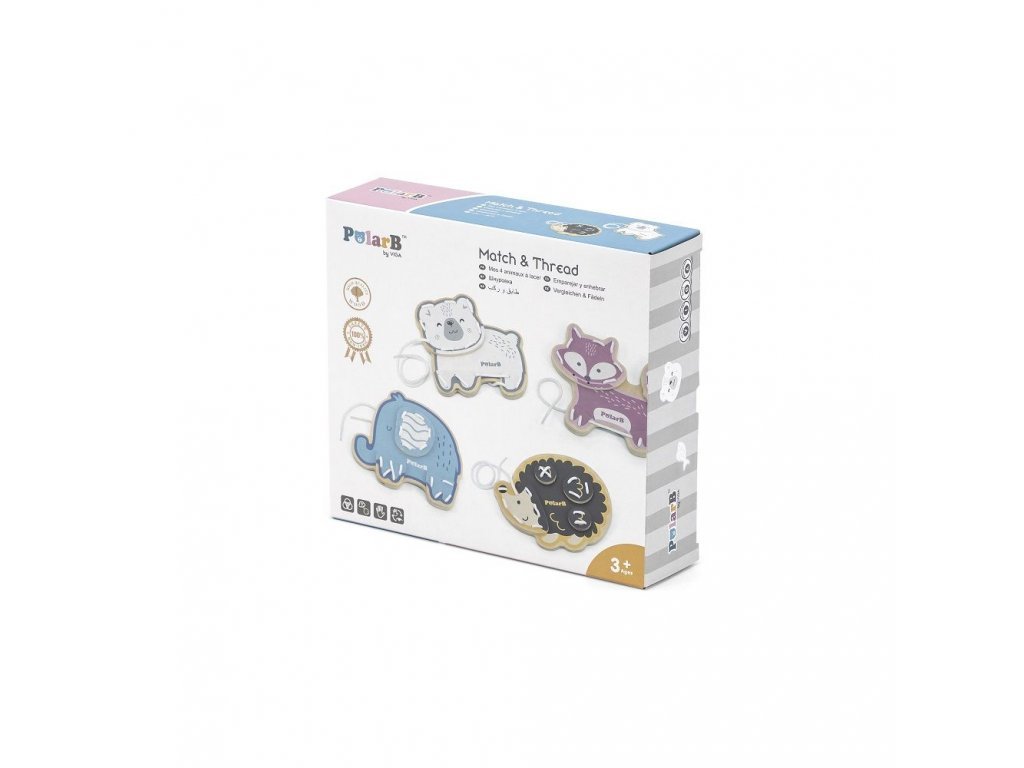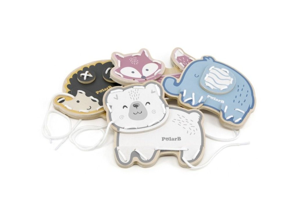 Dřevěná šněrovací sada trénuje obratné prsty.
