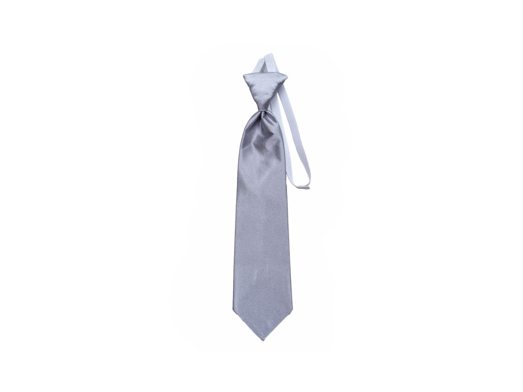 Kravata stříbrné barvy.