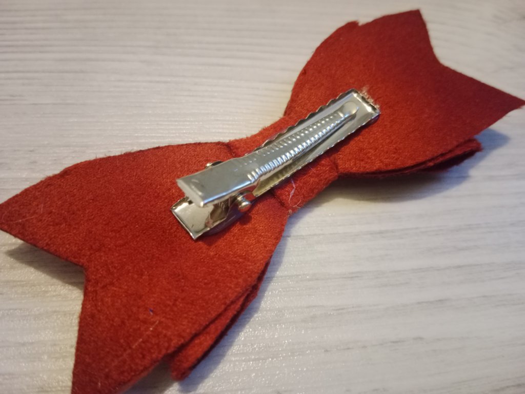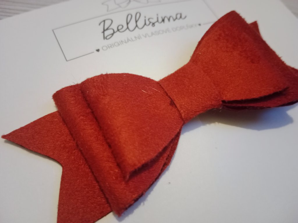 Elegantní červená mašle na sponce. Jemný semišový materiál.