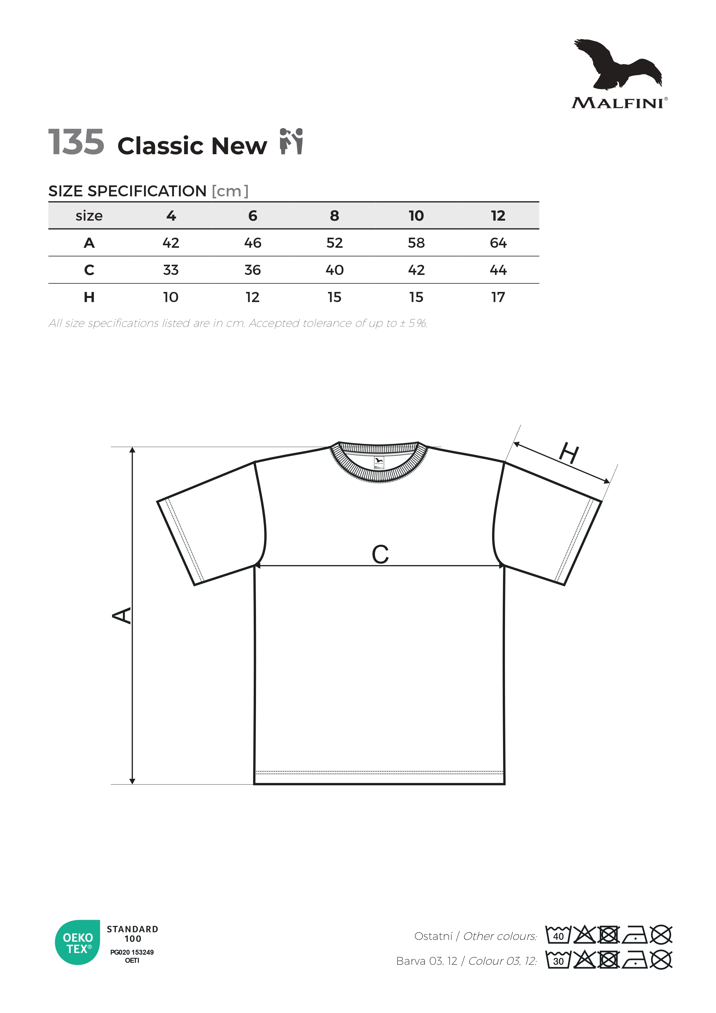 Tabulka velikosti Malfini classic