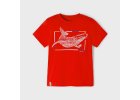 Triko s krátkým rukávem malinové barvy s potiskem stavební techniky.